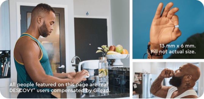 Tap for Important Safety Information, including important warnings on the risk of drug resistance if you become HIV-positive and only take DESCOVY, and worsening of hepatitis B infection.